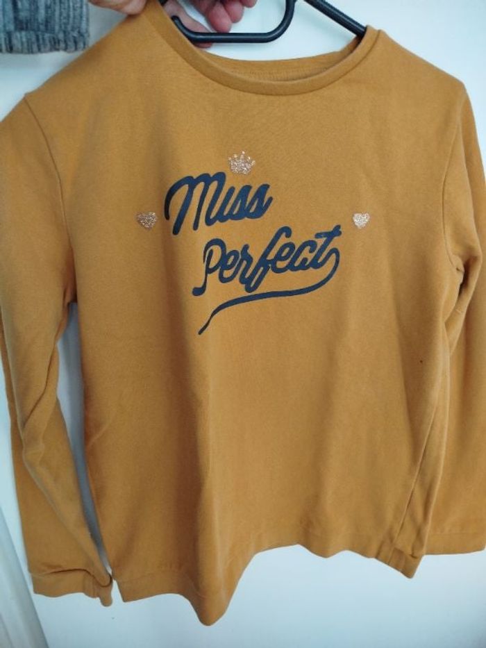 #kytie12ansfille. Sweat manches longues taille 12 ans moutarde mi saison intérieur en fil comme neuf Vertbaudet réf VE89