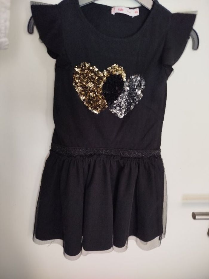 #kytie4ansfille. Robe manches courtes en tulle taille 4 jupe doublé jupe en tulle sequin sur le devant de marque Gémo de couleur noir sequin en parfaite état réf T44