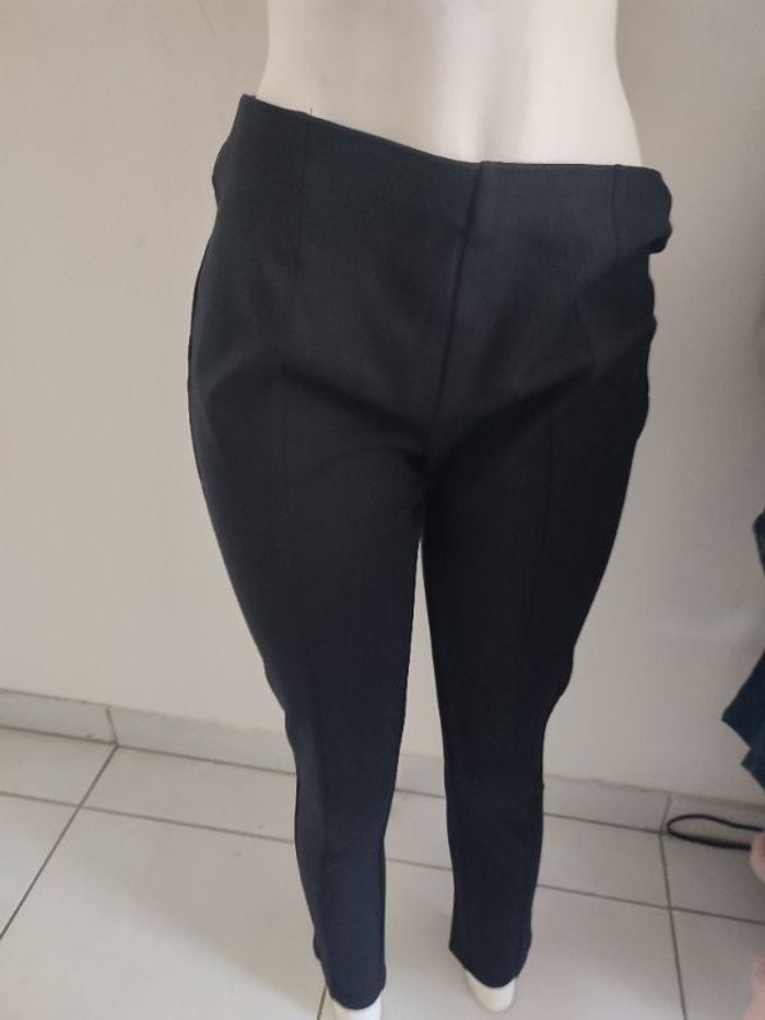 #kytieXLfemme. Legging taille XL taille grand taille 44 ans de marque Kiabi de couleur noir taille élastique mesure de la taille 44 cm tour de cuisse 56 cm hauteur 90 cm cheville 28 cm sur piqûre sur tout le long du legging devant le legging c'est neuf très doux très confortable mi-saison ref 54X