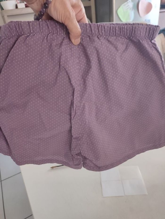#kytie8ansfille. Short taille 8 ans de marque spam taille élastique en parfaite état comme neuf de couleur mauve avec de petits pois jaunes pastel ref DPAM