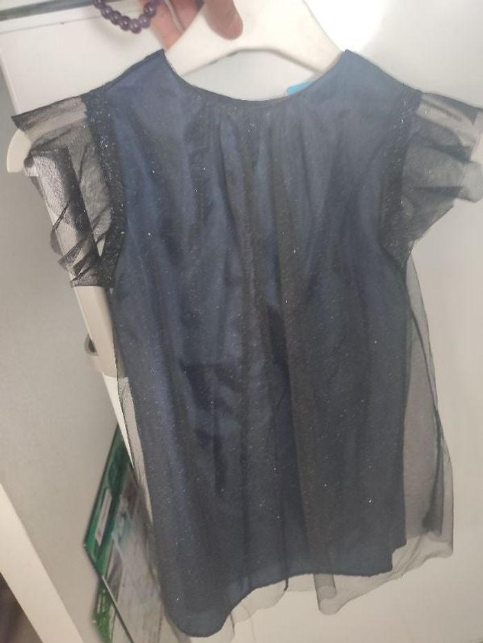 #kytie5ansfille. Robe taille 5/6 ans col rond de couleur noir pailleté doublé satiné bleu marine en tulle en parfaite état comme neuve réf B216