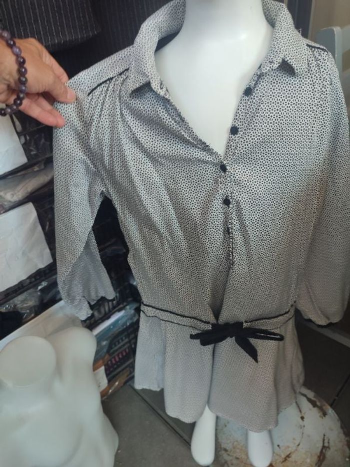#kytie10ansfille. Robe manches longues taille 10 ans de marque confetti de couleur blanc gris clair blanc noir doublé légère avec son petit ruban à la taille et le bas des manches se ferme par un petit bouton assez légère en parfaite état quasiment neuf ref J45