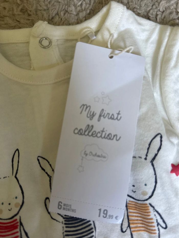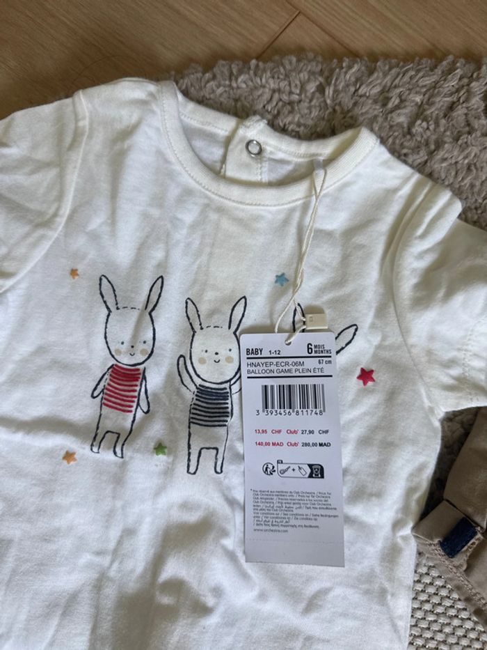 Neuf avec étiquette ensemble tee shirt et short taille 6 mois lapin Orchestra valeur 20€