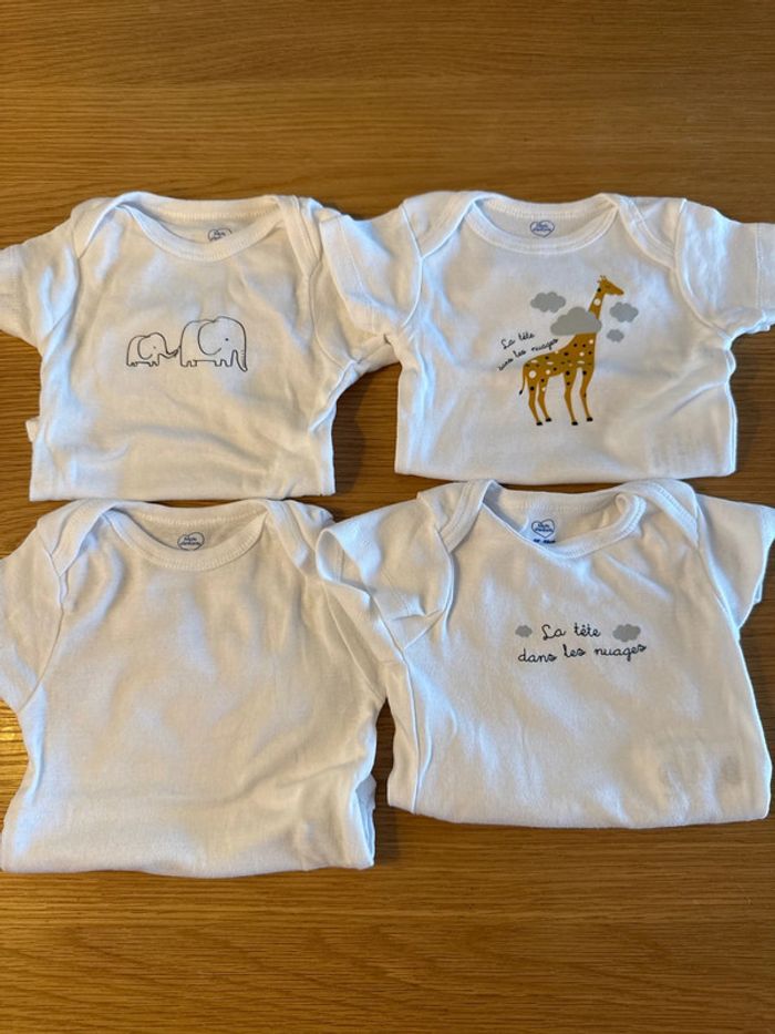Lot 4 bodies très peu portés manches courtes 6 mois excellent état Plein d’articles de bébé, vêtements neufs ou très peu portés, et accessoires de maternité.