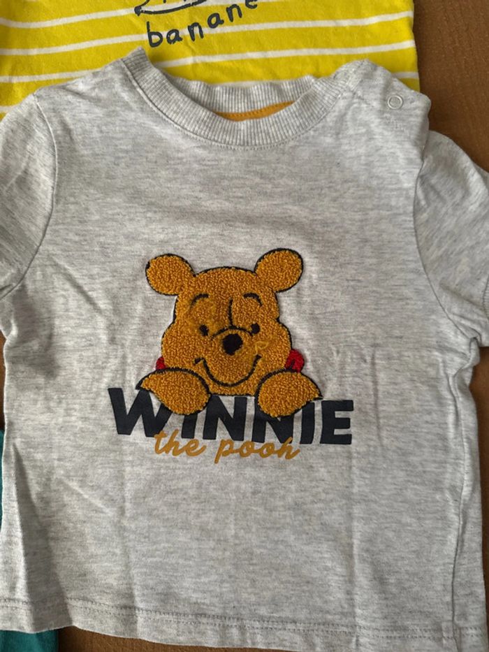 Le tee shirt blanc est en 6 mois Les 3 autres tee shirts en 9 mois Très bon état Petit prix ! #winnielourson #9mois #teeshirt Pour payer moins cher, pensez à faire un lot 😉 réduction automatique dès 2 articles, et frais de port rentabilisés 👌😃