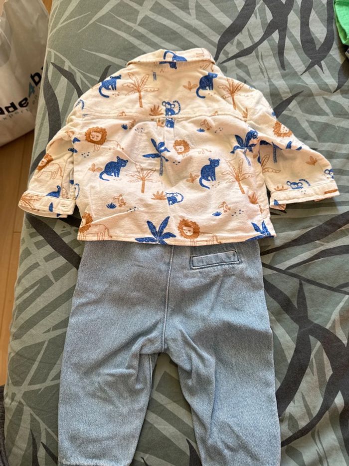 Ensemble jean et sur chemise très peu porté, excellent état, taille 6 mois.