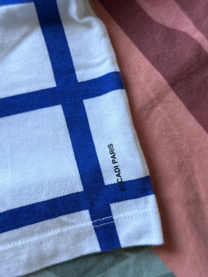 Peu porté, ensemble pantalon bleu marine et polo assorti marine et blanc de la marque Jacadi en taille 12 mois.
