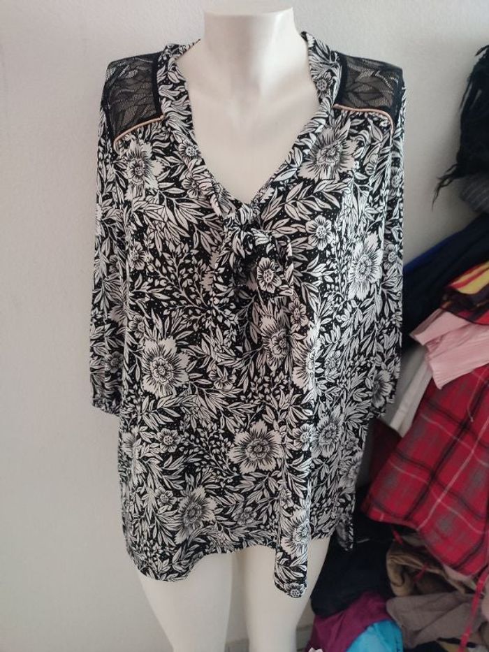 #kytie42femme. Tunique manches 3/4 taille 42 de marque mivista le col est avec un petit nœud ou alors on peut le laisser pendant le niveau des épaules et le dos sont en dentelle très fluide et très légères en col V és mesure des épaules 42 cm mesure des aisselles 58 cm la hauteur devant et de 75 cm et au dos et de 80 cm au niveau des coudes les manches sont 3/4 avec le bas élastique en état neuve réf MOV4