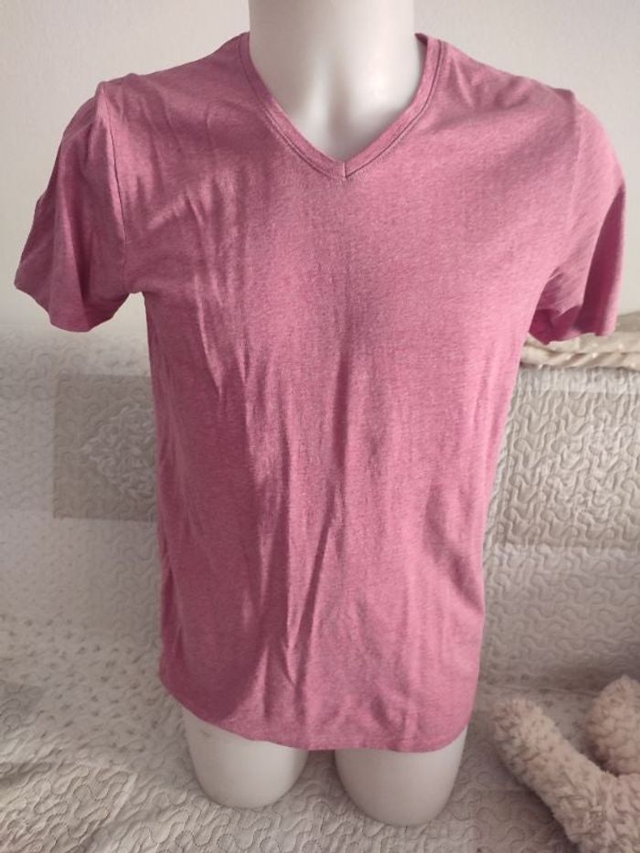 #kytieShomme. Tee-shirt manches courtes taille S de marque smog col V de couleur rose chiné en excellente état comme neuf mesure épaule à épaule 40 cm et sel à et sel 50 cm hauteur du t-shirt 75 cm réf T 17