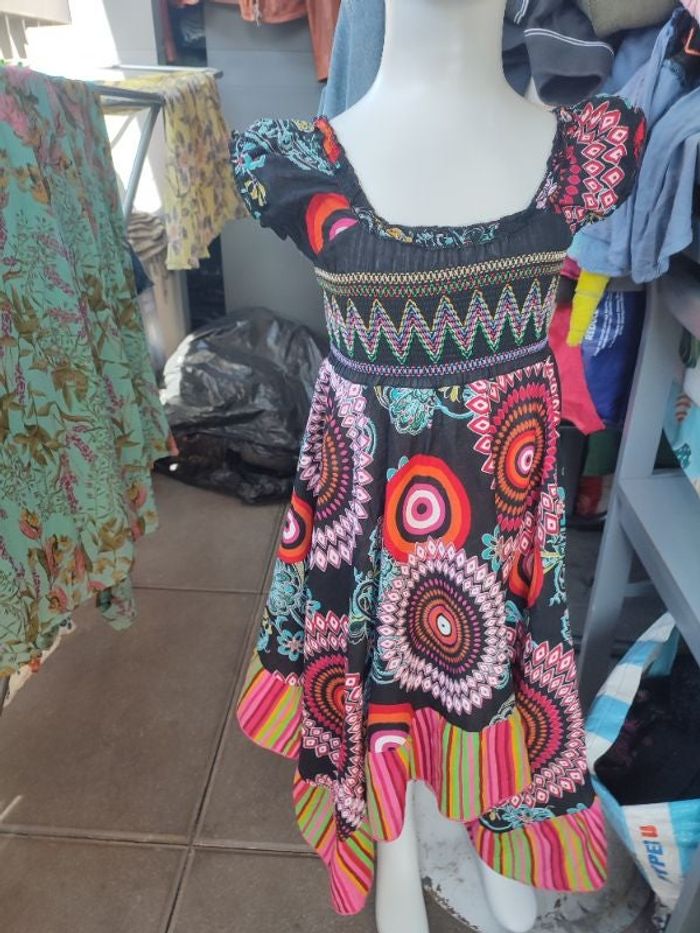 #kytie4ansfille. Robe manches courtes taille 4 ans légère et fine en état 'euve multicolore taille élastique épaules élastique et bras élastique bisauté sur le bas de la robe trop mignonne 😘réf 982