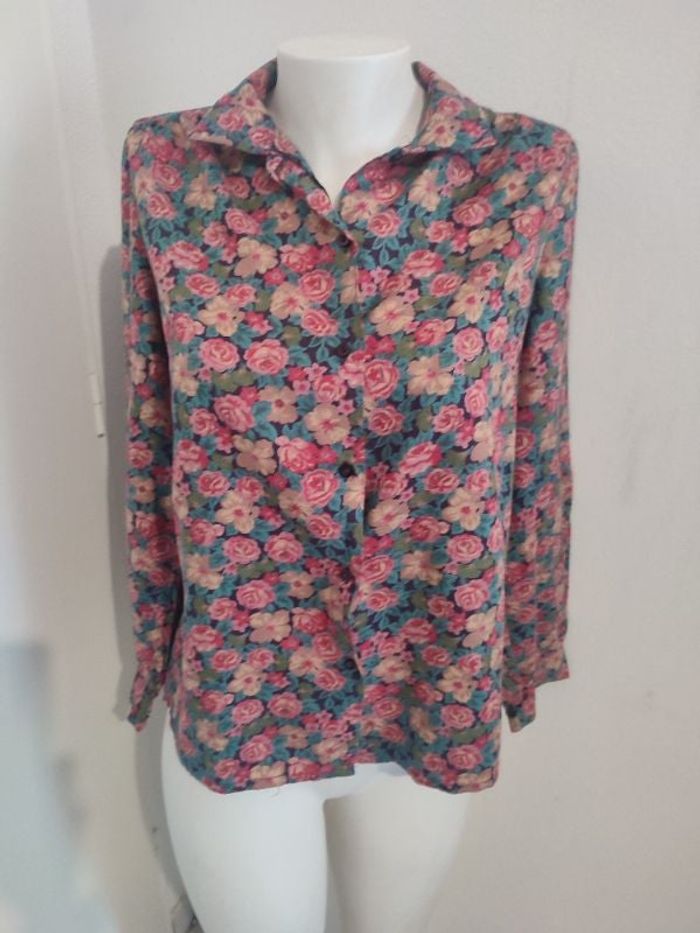 #kytie34femme. Chemise manches longues taille 34/36 se ferme par des boutons sur le devant ainsi que aux manches vintage en état neuve légère et fine 51 % coton 49 % viscose mesure des épaules 38 cm mesure des aisselles 52 cm hauteur de la chemise 60 cm très confortable sur piquer avec France dans le dos et au niveau des épaules ref W26