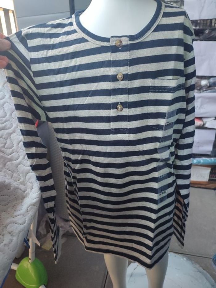 #kytie12ansfille. Tee-shirt manches longues taille 12 ans de marque u essentielle de couleur gris et bleu marine fin et léger ref G67