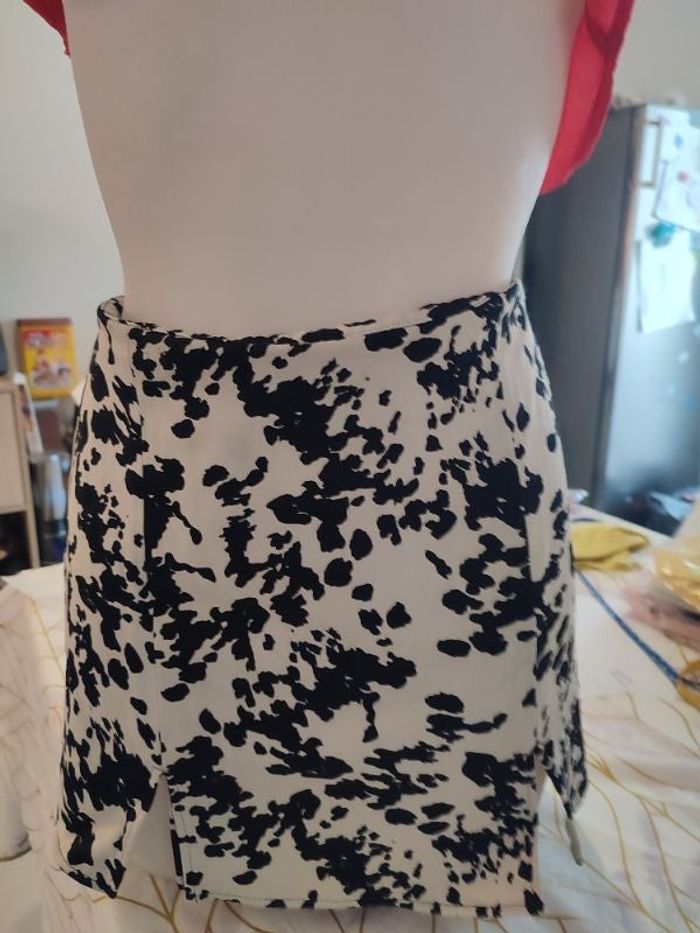 #kytieXSfemme.superbe Short jupe taille XS de marque Zara se ferme par une fermeture éclair sur le côté gauche de couleur crème et noir un peu ouvert que sur le bas sur le devant sur 10 cm mesure de la taille 34 cm hauteur 36 cm en parfaite état comme neuve réf G38