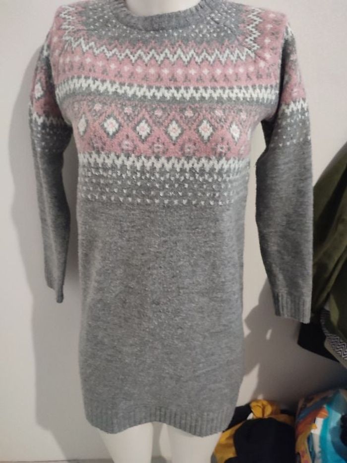 #kytieSfemme. Robe pull manches longues taille S col ront de marque esmara en parfaite état de couleur gris et rose pastel mesure des aisselles 46 cm hauteur de la robe 80 cm