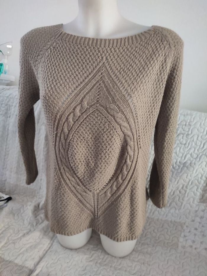 #kytieSfemme. Petit pull maille taille S/M de marque aucune colle rectangle en excellente état comme neuf mesure des aisselles 46 cm hauteur 65 cm de couleur taupe assez souple et très confortable