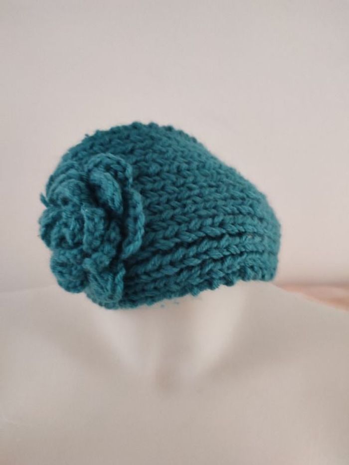 #kytieaccessoirefemme. Bandeau cheveux cache cache enlève 9 en maille de couleur vert s'attache par un bouton avec petite rose tricoter 100 % polyester longueur du bandeau 45 cm largeur 12 cm