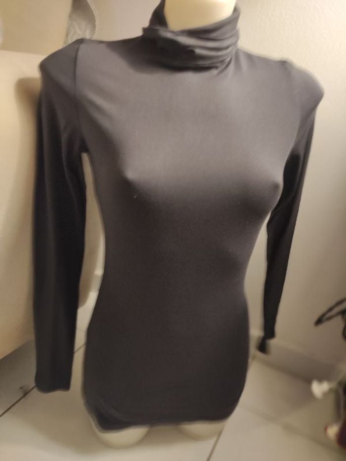 Sous-pull col roulé manches longues taille M de marque Jennifer de couleur gris anthracite taupe mesure des épaules 34 cm mesure des aisselles 38 cm hauteur 70 cm le sous-pullet est assez long en très très bon état