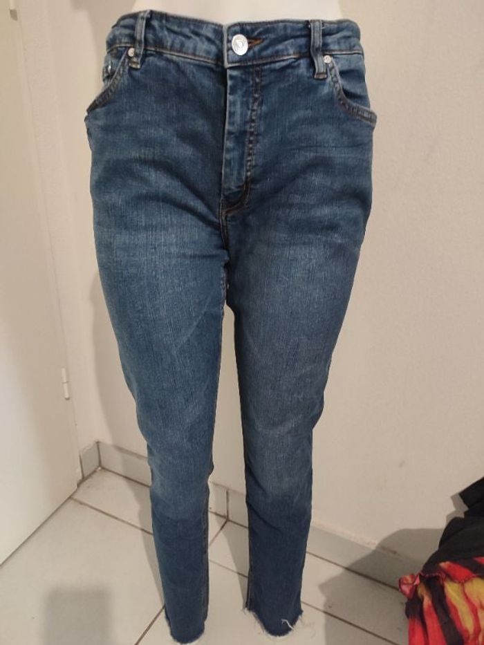 Jean taille 40 modèle isa le bas des chevilles est effilé de marque Mango en excellente état zippé avec un bouton poche avant de Poche arrière mesure de la taille 46 cm tour de cuisse 60 cm hauteur du jean 95 cm tour de cheville 30 cm le jean est un peu cartonné