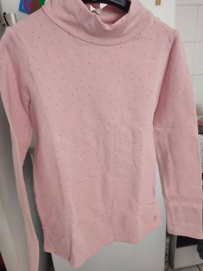 #kytie6ansfille. Sous-pull molletonné taille 6 ans col montant de couleur rose pastel avec petit pois beige doré de marque Okaïdi le sous-pull et quoi de neuf en état neuf sans tâches sans trou