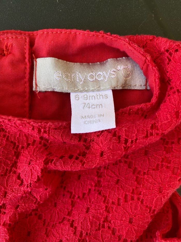 Vend très élégante robe à dentelle rouge, idéale pour cérémonie, soirées ou autres événements Taille 6-9 mois -74 cm Marque Early Days Très bon état car portée une seule fois. #laet249_fille_6mois #laet249_fille_9mois #robefille9mois #robeceremonie #robedentelle #été #tresbonetat #bonneaffaire
