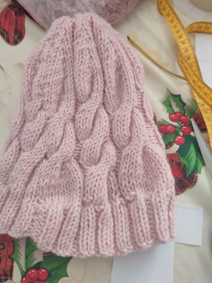 #kytieaccessoirefemme. Bonnet en laine rose pastel torsadée sans marque 9 taille unique alors le tour de la tête élastique non tiré est de 50 cm élastique-au max et de 76 cm