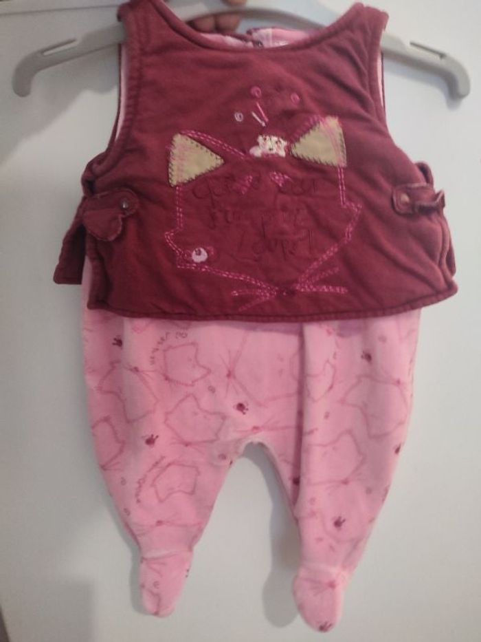 #kytie1moisfille. Grenouillère sans manche taille 1 mois sans marque sans marque en velours en rose avec un par-dessus de couleur bordeaux en coton à grenouillère est en très très bon état