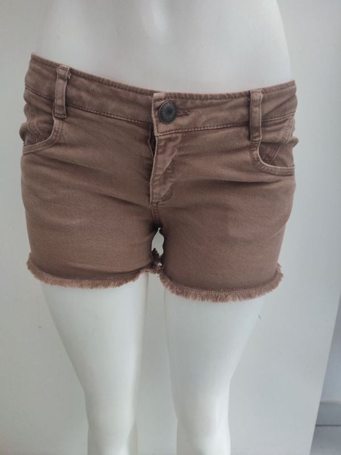 #kytie40femme. Short en jeans taille 40 de marque Kwoman de couleur beige camel bas des cuisses frange poche avant poche arrière zippé avec un bouton mesure taille 40 cm tour de cuisse 54 cm hauteur 30 cm en super état