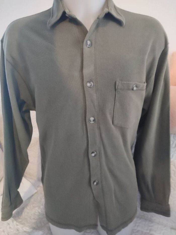 #kytieLhomme. Chemise manche longue taille L de marque Burton de couleur kaki se ferme par des boutons devant ainsi que les manches se ferment par un bouton une poche à l'avant sur poitrine à gauche se ferme également par un bouton en parfaite état matière coton tissu style nid d'abeille croisé mesure épaules a épaules 55 centimètres esselles a esselles 56 centimètres hauteur épaules bas 70 centimètres