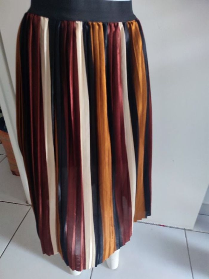 #kytieMfemmeb jupe longue plissée taille M de marque Camaïeu taille élastique neuve multicolore mesure taille 34 centimètres élastique tiré au max 52 centimètres hauteur taille bas 70 cm doubler satiné brillant. Hyper douce et confortable 77% polyester 23% elasthane