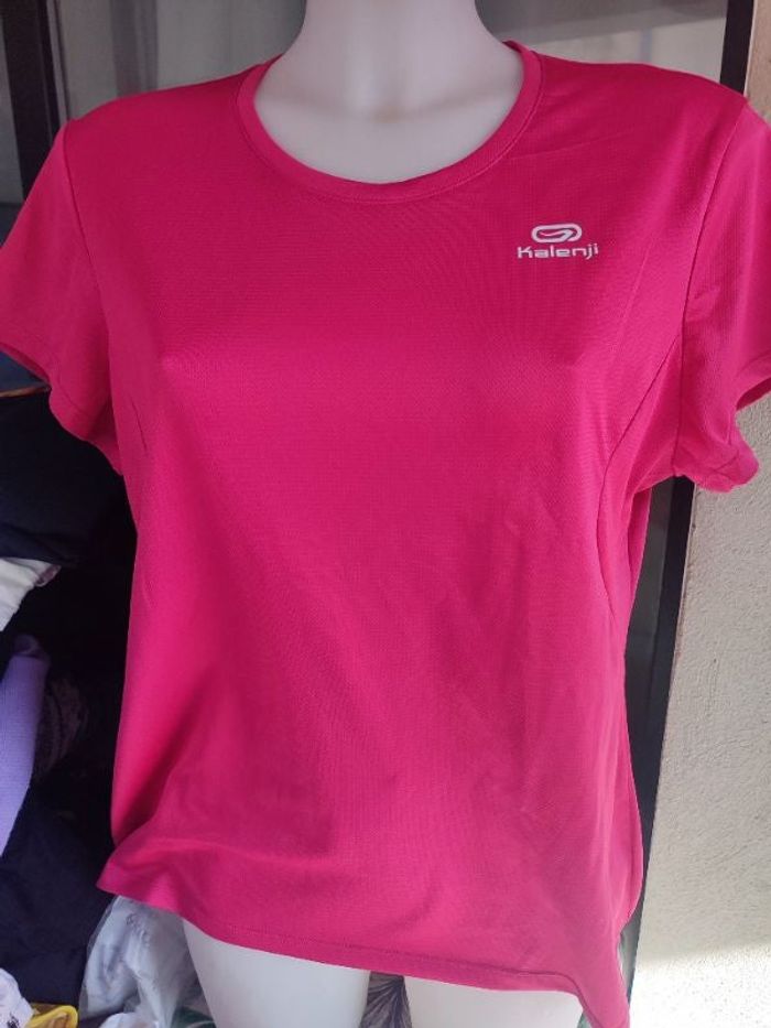 #kytie44femme. Tee-shirt manches courtes taille 44 col rond de marque kalenji rose fushia tissu alvéolé surpiqure sur le devant neuf mesure épaules a épaules 42 centimètres esselles a esselles 50 centimètres hauteur épaules bas 62 cm léger et fin