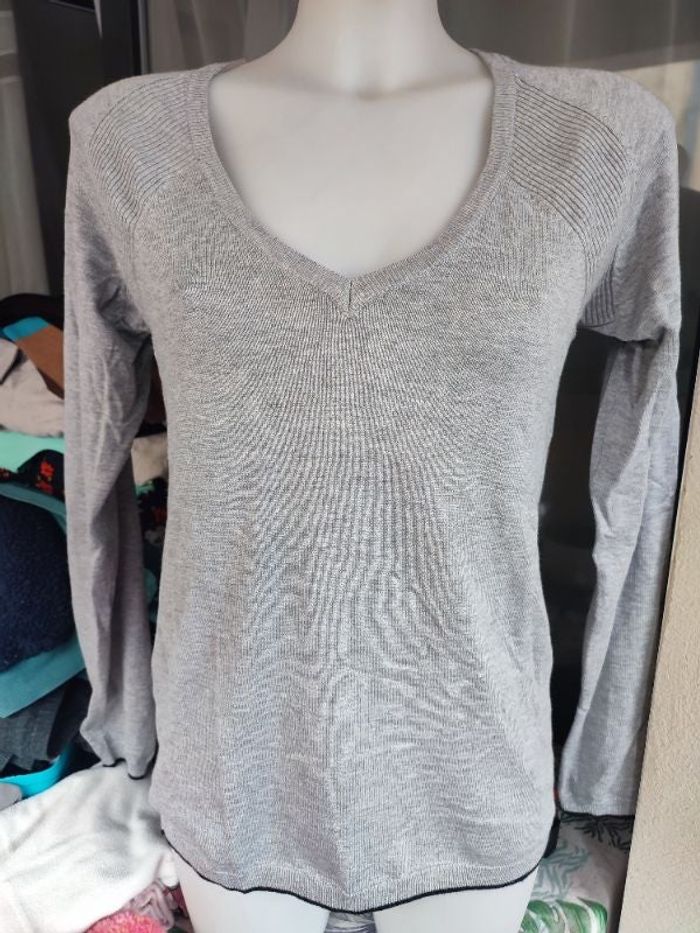#kytie38femme. Pull manches longues taille 38/40 col V de marque u collection comme neuf de couleur gris mesure esselle a esselle 46 cm hauteur épaule bas 65 centimètres léger mi saison et très souple
