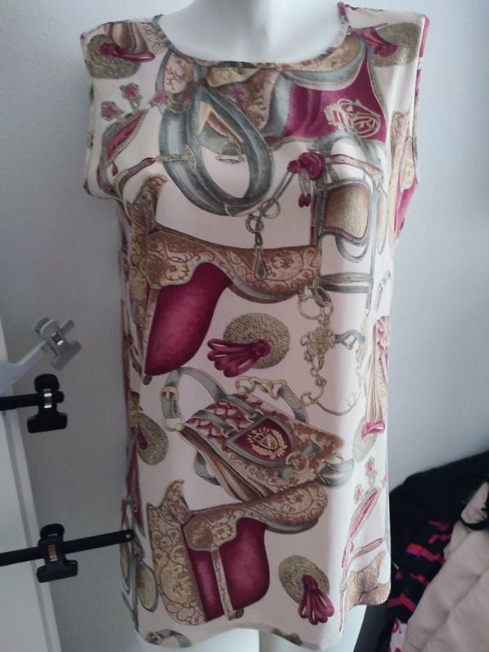#kytie40femme. Débardeur tunique taille 40 col rond hyper souple et fin suédine de couleur beige et bordeaux neuf mesure esselle a esselle 50 cm hauteur épaule bas 72 cm