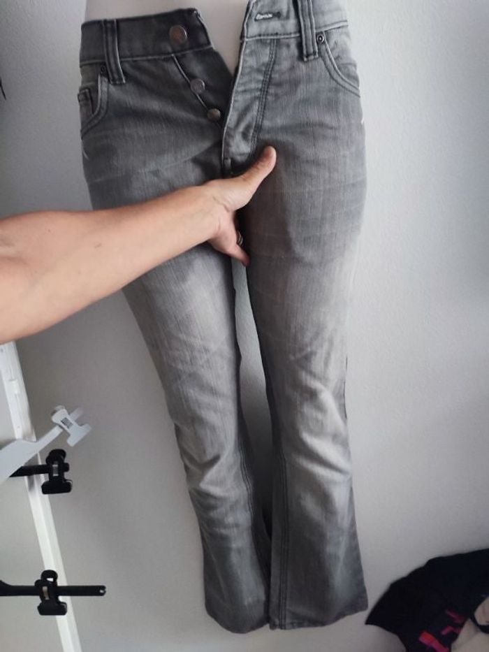 #kytie38homme. Jeans taille 38 de marque use ansd abusé de couleur gris le jean neuf poche avant poche arrière se ferme par des boutons devans mesure taille 38 centimètres hauteur taille bas 100 centimètres tour de cuisse 60 cm