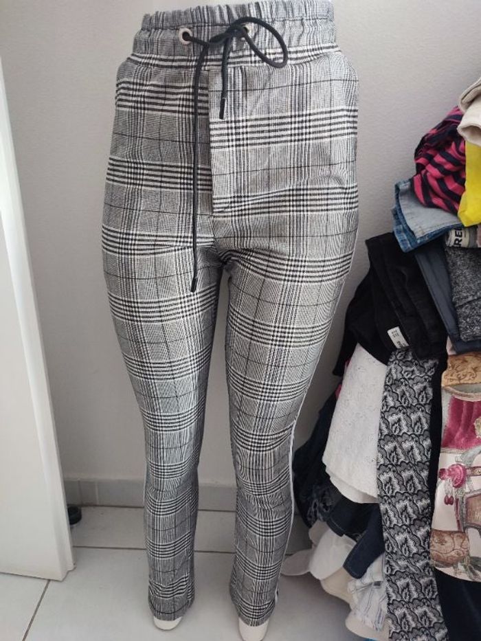 #kytieMhomme. Pantalon chino taille M de marque uniplay taille élastique avec cordon de couleur noir gris blanc poche avant et arrière Matière style tergal 60 % coton 37 % polyester 3 % élastique effet cartonné le pantalon est neuf mesure de la taille 36 cm élastique-au max 44 cm mais vaut mieux pas le tirer au max donc au max c'est 42 cm tour de cuisse 56 cm et la hauteur taille cheville peut-être un peu au-dessus des chevilles 95 cm
