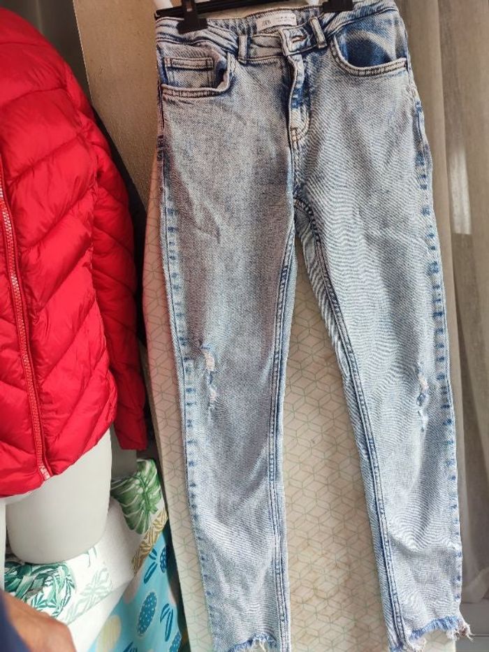 #kytie13ansfille. Jean taille 13/14 ans de marque Zara à la mode effilé sur les cuisses les genoux et les chevilles en excellente état comme neuf poche avant et arrière Zara kids de couleur bleu ciel chiné blanc taille réglable par élastique à l'intérieur