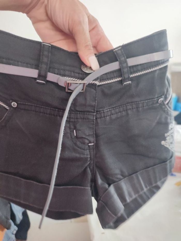 #kytie7ansfille. Short taille 7 ans de marque orchestra en très bon état de couleur noir et gris argenté se ferme par une fermeture de et un accroche taille réglable par l intérieur matière comme du jeans effet simili mat poche avans et arrière