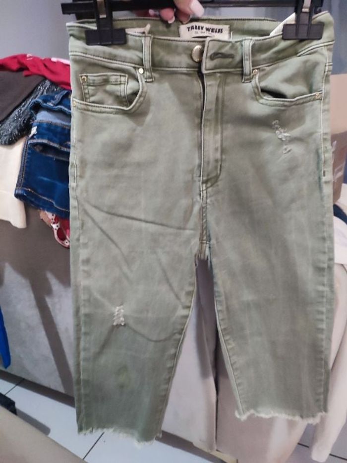 #kytie36femme. Bermuda genoux taille 36 de marque TALLY Weijl skinny de couleur vert se ferme par une fermeture éclair et un bouton devans en elasthane et en coton éfilé sur le genoux en superbe état comme neuf vintage mesure taille 36 centimètres tour de cuisse 44 centimètres hauteur taille bas 58 centimètres Jean très très souple et hyper confortable