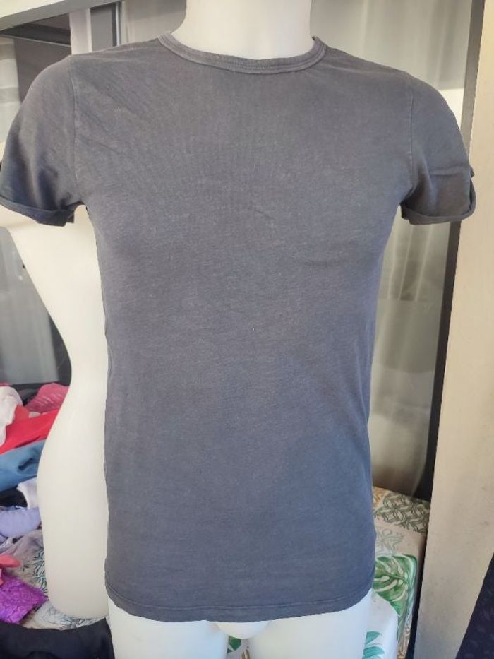 #kytieXShomme. Tee-shirt manches courtes taille XS de marque HetM de couleur noir revers sur les manches col rond comme neuf mesure épaules a épaules 38 centimètres esselles a esselles 44 centimètres hauteur épaules bas 65 centimètres très légère