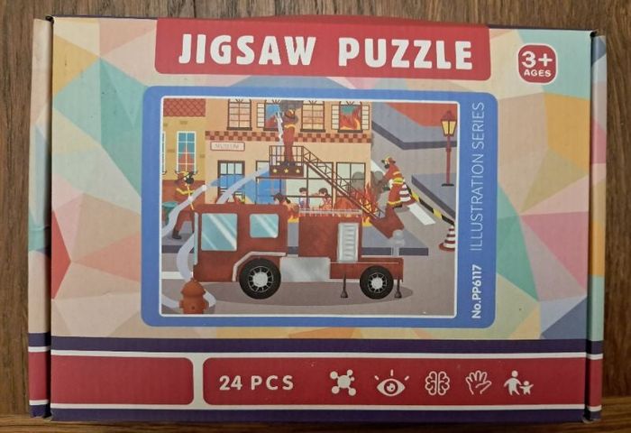 Le sac plastique avec ls pièces a été ouvert mais ce puzzle n a jamais été fait. 24 pièces Thème pompiers