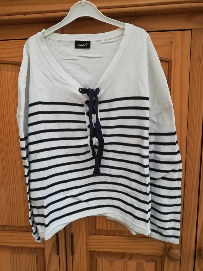 Haut en très bon état. Porté 1 ou 2 fois. Lavé 1 seule fois avec soin. Aucune tache ni défaut. Comme neuf. Taille 2 correspond à un 38
