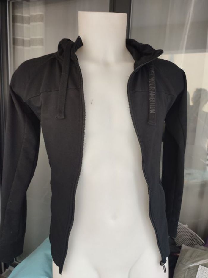 #kytieXShomme. Veste a capuche manches longues taille XS/S de marque fuel tour ambition zippé capuche avec cordon mi saison poche avans avec fermeture éclair mesure esselle a esselle 40 centimètres hauteur épaules bas 60 cm comme neuf en Exellente état