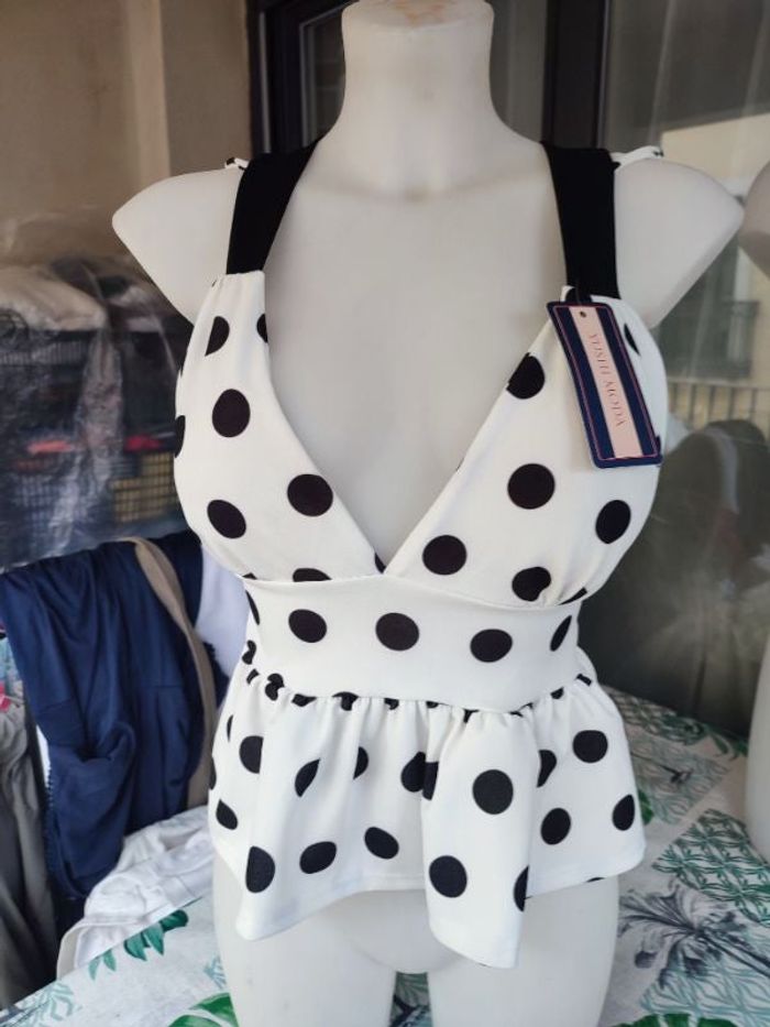 #kytietailleuniquefemme. Top sans manche taille unique de marque yushi Moda en nylon et elasthane bretelle sur l arrière mousse a la poitrine pin UP vintage matière mi saison hyper confortable et souple mesure hauteur épaules bas 55 centimètres vas de la taille 34/36/38 au plus 40 mais risue d être serré de couleur noir et blanc