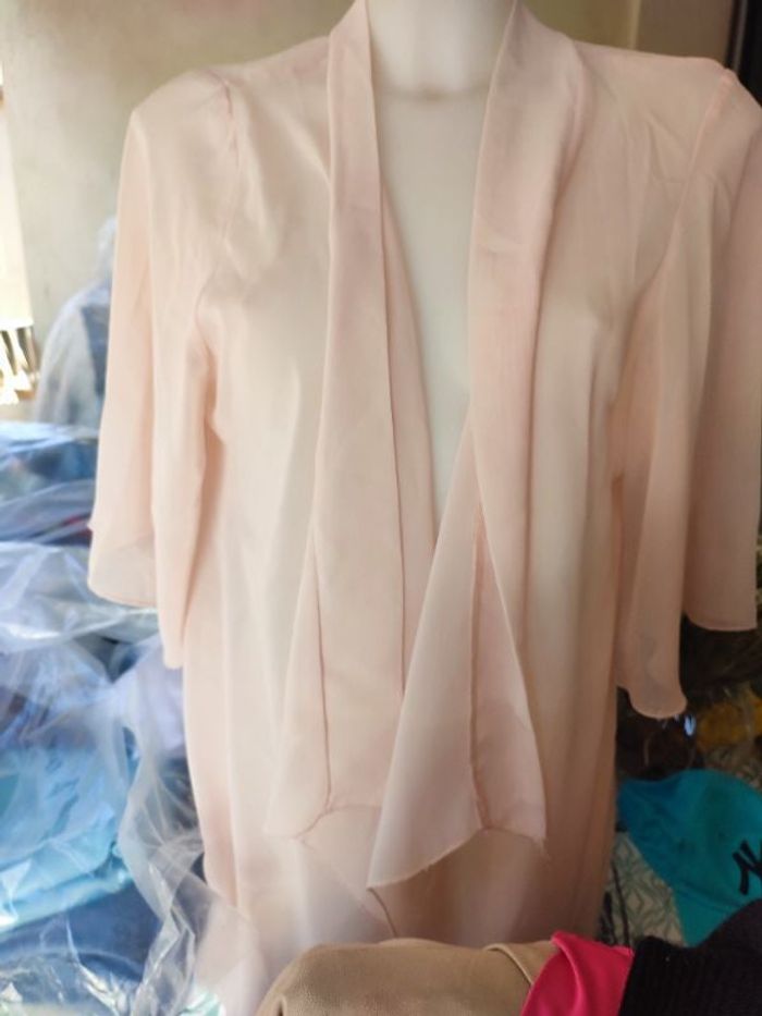 #kytieSfemme. Gilet voile taille S ne se ferme pas plus long devans que derrière de marque Boohoo manche 3/4 papillon 🦋 de couleur rose pastel neuf