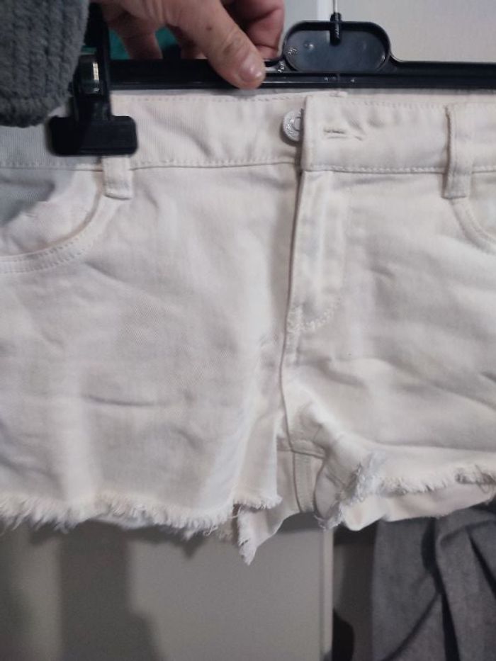 #kytie36femme. Short en jeans taille 36 de marque Jennyfer en parfaite état se ferme par une fermeture éclair et un bouton devans de couleur blanc griffé sur les cuisses mesure taille 38 centimètres hauteur taille bas 25 centimètres