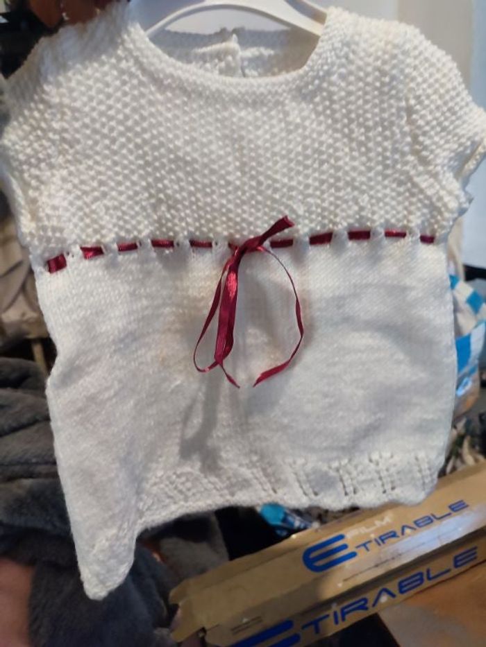 #kytie3moisfille. Robe pull manches courtes taille 3/6 mois fait main neuve