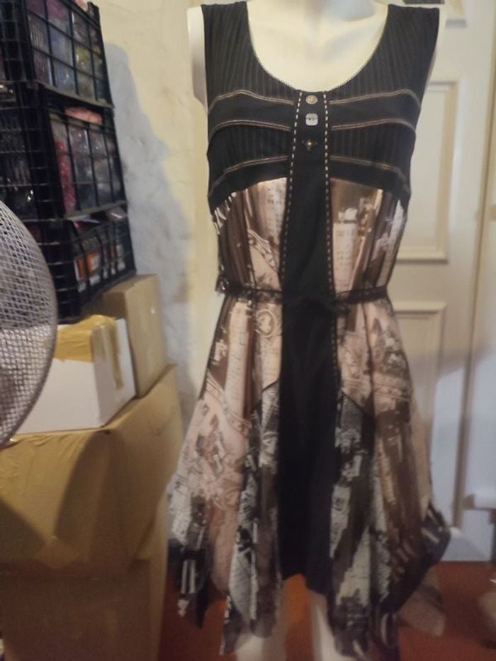 #kytie42femme. Robe taille 42 de marque le monde est a vous neuve de couleur noir rose pastel a motif doublé et en voile dessus hyper souple en elasthane 50% polyester viscose 50% 75% polyamide et 25% élastique mesure esselle a esselle 42 centimètres longueur 100 centimètres