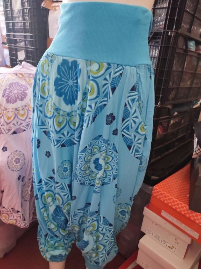 #kytietailleuniquefemme. Sarouel taille unique 100% viscose taille élastique mesure 30 cm ×2 elatique tiré 40 cm hauteur de l élastique côtelé taille 12 cm bas delà cheville élastique longueur du sarouel 95 centimètres largeur cuisse entre jambe 90 centimetres motif Fleurie 🌺🌸🌷 neuf de couleur bleu clair la taille correspond du 36 au 42