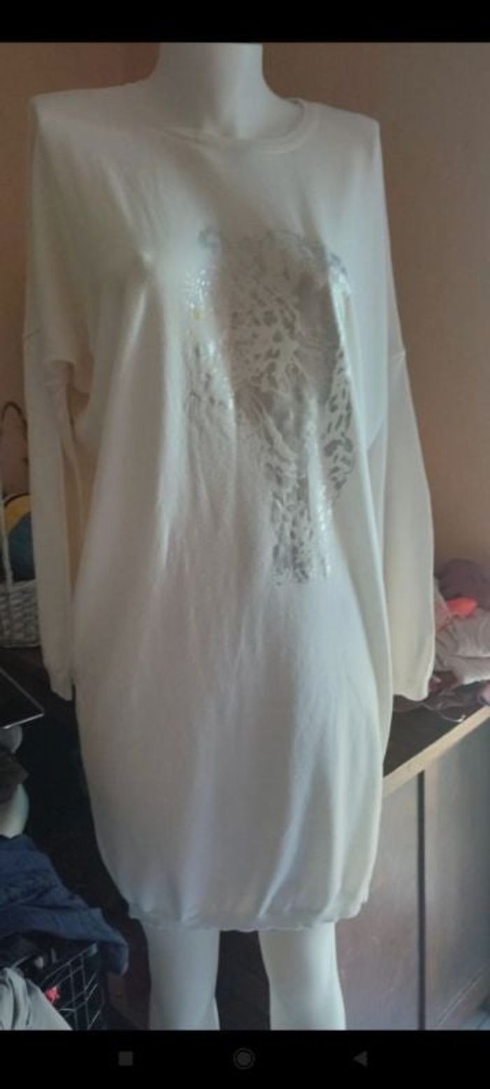 #kytieMfemme. Robe pull manches longues taille M tonne motif panthère argenté en Exellente état de marque Mosaika de couleur blanc et argenté longueur de la robe 95cm robe pull légère et fine