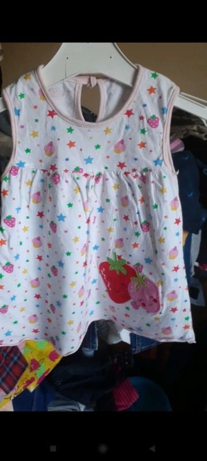 #kytie18moisfille Petit robe d été legere robe debardeur avec petit noeux derriere au coup motif fraise et petit gateau superbe etat