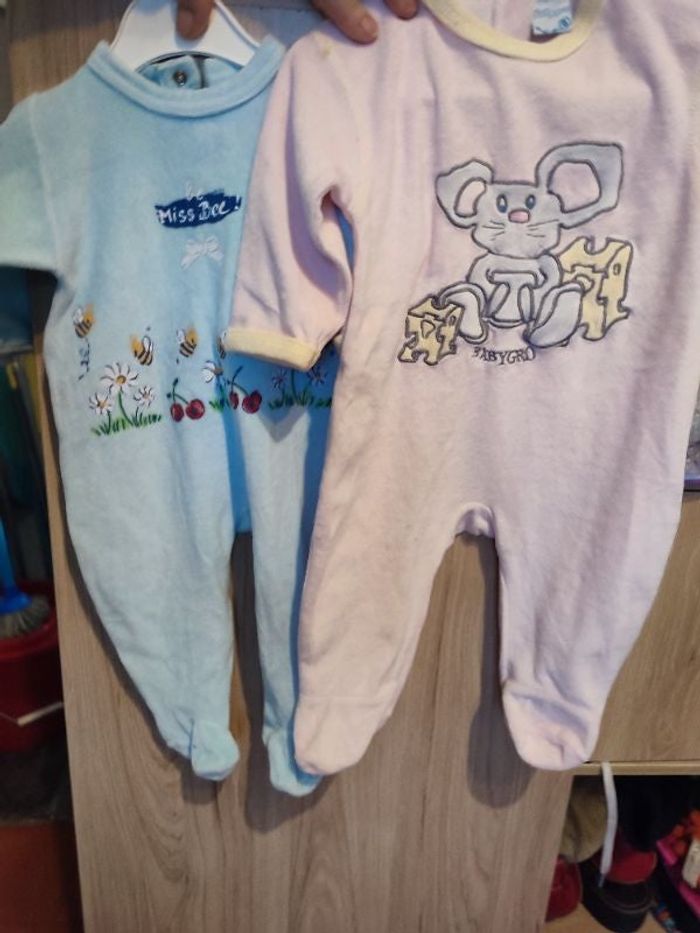#kytie3moisfille. Lot de 2 grenouillère taille 3 mois fille manche longue en velour en très bonne état la bleu est neuve de marque babygro